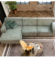 Bank Devonconsists of several parts and can be put together according to your wishes. Available in the fabrics Juke, Emerald, Quartzand Casa.