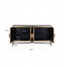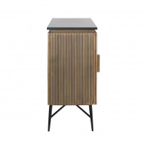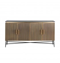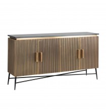 Sideboard Ironville 4-doors is a unique sideboard in gold/brass with ribbed relief and black marble top. Mid-Century Modern style (sixties) in a new look!
