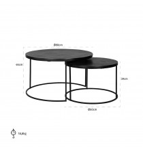 Coffee table Bolder set of 2 aluminum black is tough, but also elegant. The stylish round black coffee tables match well with different living styles.